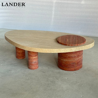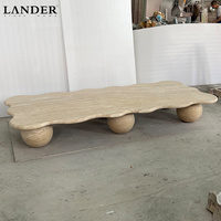 Landertore โต๊ะกาแฟหินอ่อน travertine โต๊ะกลางโต๊ะหินอ่อน, โต๊ะกาแฟหินอ่อนลายคลื่นสำหรับห้องนั่งเล่น